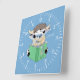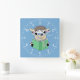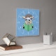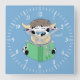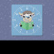 A charming square wall clock for a boy's room featuring a sweet cartoon cow reading a book on a blue background . Personalise it with the child's name .