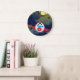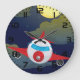 Cartoon Red Airplane Flying In Night Sky Large Clock