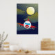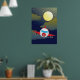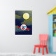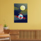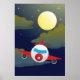 Decorate a nursery or playroom with this whimsical cartoon airplane poster featuring a cute red jet soaring through a star filled night sky. The vibrant illustration of a full yellow moon and fluffy clouds creates a magical atmosphere perfect for kids who love aviation and travel. This high quality print adds a touch of adventure to any childs bedroom wall and makes a wonderful gift for young pilots in training.