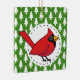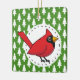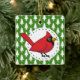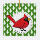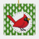 Cartoon Red Cardinal on Green White Pines Pattern Ceramic Ornament
