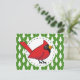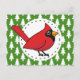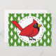 Cartoon Red Cardinal on Green White Pines Pattern Postcard