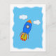 Custom postcards with cartoon rocket and clouds with newsprint effect on blue background.