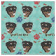 Cute cartoon style Rottweiler with a scattering of bones and paw tracks. This design is intended to tile seamlessly.