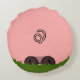 Cartoon pig image with tail on reverse on round throw cushions.