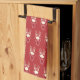 Cute, smiley Rudolph the reindeer cartoon on red Christmas kitchen towel.