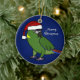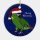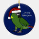 Merry Christmas! Cartoon Yellow Collared Macaw ornament of the parrot wearing a Santa cap, against a dark blue background. Fabulous bird lover decorations this holiday season.