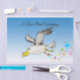 Grey and WHITE cartoon seagull flying over head. With a yellow beak. Let this entertaining humourous kids design do the talking for you.