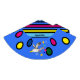White and grey cartoon seagull flying over head. With a yellow beak and with colourful stars and circles . Let this entertaining humourous kids design do the talking for you.