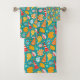 Cartoon seashells with sand and doodle ornament bath towel set