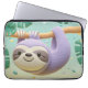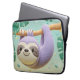 Cartoon sloth hanging on tree branch laptop sleeve