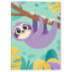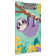 Cartoon sloth hanging upside-down from a branch with a sleepy grin. Exaggerated googly eyes