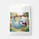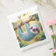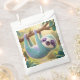 Cartoon sloth hanging upside-down from a branch with a sleepy grin. Exaggerated googly eyes
