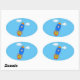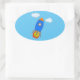 Cartoon Space Rocket In Blue Sky Oval Sticker