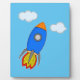 Cartoon Space Rocket In Blue Sky Plaque