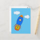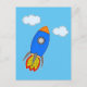Cartoon Space Rocket In Blue Sky Postcard