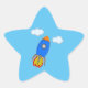 Cartoon Space Rocket In Blue Sky Star Sticker