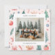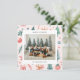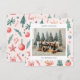 Holiday card featuring cute Christmas themed illustrations in a pastel colour scheme with one family photo paired with a holiday greeting and your name and year in a sans serif font.