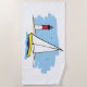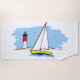 Cartoon-Style Sailboat and Lighthouse Beach Towel