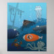 Cartoon Submarine Boy Undersea Animal Fish Poster