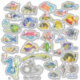 32 Cute cartoon fish from Hawaiian tropical coral reefs, a seahorse, 2 goatfish, a long trumpetfish, and a little submarine are flashing their brightly coloured shapes as fish stickers for you or your friends. 32 varieties including parrot fish, triggerfish, butterflyfish, and more... Can you find the 2 triggerfish? There is even a green sea turtle. Also find 2 different Picasso fish or humuhumunukunukuapua'a as they are called. Fun fish for snorkelers, divers, or just ocean explorers. These vinyl stickers can adorn Laptops, luggage, water bottles notebooks, lockers, journals... anything. They are fade proof, water proof and scratch resistant.