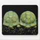 This altered photograph features two tortoises hanging out together. The tortoise shells have various shades of green and there are small stones scattered aroud them. The stones range in colours from green to brown.
