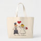 Cartoon Wedding Couple Bride & Groom Red Heart Large Tote Bag