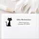 The image showcases a stylised, cartoonish black cat with a unique and whimsical design. The cat has an extremely slender body, long legs, and a thin, curly tail that spirals at the end. Its fur is wild and spiky, giving it a scruffy and somewhat mystical appearance. The most striking feature is its large, round, white eyes, which contrast starkly against its dark fur, giving it an expression of surprise, curiosity, or mild bewilderment. Its small, pointed ears add to its quirky and playful aesthetic. The overall art style blends fantasy and cartoon elements, making the cat look both eerie and endearing.