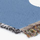 A quality printed throw has its advantages. This is a much finer weave throw than its loopier cousins, and though lighter, it is worth the investment for custom room accessorizing. The back is much prettier than the typical brown, and the fringe on the long sides very vivid, the selvage nicely done. Before photographing, I washed the throw in cold water, delicate, with a thicker woven throw the same size. On tumble dry low, this throw was dry in half the time as the other. This is a very practical quality if you use throws for furniture covers or to wrap up in frequently. The sleekness of the fabric makes it a great layer for accenting or protecting without the feeling of sitting on too much stuff. Perfect for napping or when you feel a light chill coming on. The color printing is beautiful and on this fabric, matched the design and color of my Photoshop image. This is an advantage for blending room fabrics and colors. The fringe on the short sides prints the colors from the design image and therefore varies from the side fringe. I streaked a white fractal line through the plaid pattern to give the illusion of weaving. This printed as crisp as an illusory thread, and put some white in the short side fringe, showing another advantage of print vs loomed- for artistic purposes, line lines, detail, and color integrity can be planned and preserved. My loomed throws have color limitations and more of a needlepoint texture. Print throws reproduce an exact image. The throw felt a little stiff straight out of the package, but this went away in the first delicate wash. Of course I searched the wash water for ink or bleeding and there was none.