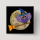 Cartoon Wizard Owl Flying on Broom 15 Cm Square Badge