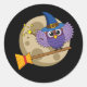 Cartoon Wizard Owl Flying on Broom Classic Round Sticker