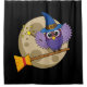 Cartoon Wizard Owl Flying on Broom Shower Curtain