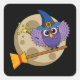 Cartoon Wizard Owl Flying on Broom Square Sticker