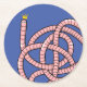 Cartoon worm in crown round paper coaster