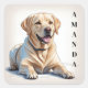 Cartoon Yellow Lying Labrador Retriever Square Sticker