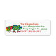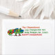 Make Christmas personalised return address labels with this cute cartoon chameleon in bright colours with red and green text.