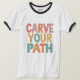 The image shows a multi-colour t-shirt design with the text "Carve Your Path" in a variety of colours. The text is arranged in a dynamic, eye-catching way that suggests the idea of carving one's own path in life.