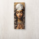 "This striking design presents a portrait of the Virgin Mary as a detailed wood carving or relief sculpture, rendered in rich, warm brown and reddish-brown tones. She is depicted with a tranquil, contemplative expression, hands clasped in prayer, and is framed by a rustic, textured halo. The rough, earthy texture of the wood grain provides a powerful sense of ancient, grounded spirituality. This design is highly suitable for products with a rustic, spiritual, or devotional theme. Imagine it on wooden plaques, religious art prints, handcrafted items, or home decor that evokes a traditional, artisan aesthetic."