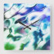 Drawing of dunes with some carved or sculpted effect and with green and blue to some lilac stains gradually breaking down to white, thus reminding a matte metallic piece.