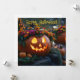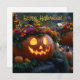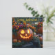 Carved Halloween pumpkins decorated with flowers Holiday Card