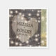Rustic outdoor wedding paper napkins with a romantic woodland setting, string twinkle lights, an old rustic tree with a carved heart featuring your names and wedding date.