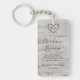 Carved Sweethearts Rustic Birch Wood with Aged Grey & Off White Birch Tree Bark Design, and a distressed patina weathered look. This reclaimed lumber design features the couple's initials carved into the heart shape within the tree. Also, distressed typography country chic fonts, along with an elegant vintage handwriting script font. The design is perfect for a fall, winter, spring, or summer wedding and can be used for any season - Personalised Mother of the Groom Heartfelt Quote Keepsake Keychain!