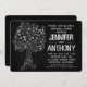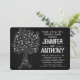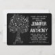 chalkboard modern black and white love tree rehearsal dinner invitation with carved heart and your initials.