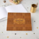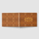 Rustic wedding guest book with graphics of a carved wood panels and a oval wood text area. Graphics wood looking text reads Guest Book. Personalise the custom dark brown text to suit your wedding needs.