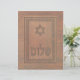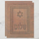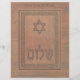 Features a computer-generated "old wood carving" of a Magen David (Star of David), text reading "Shalom" and a floral border. Customise by adding your own text.