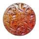 A woodgrain textured carved wood look with a cherry to light oak stained appearance. Has a decorative abstract design. Also resembles tooled leather with embossing.