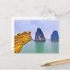Carving of Dragon, on bow of boat, with Postcard
