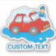 Cartoon of a man in blue form hand washing a red car.