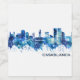 Blue Watercolor Skyline of Casablanca, a port city and commercial hub in western Morocco, fronting the Atlantic Ocean