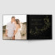 This Elegant Cascading Black and Gold Foil guest book adds a stylish, personalised touch to your wedding ceremony. The design features your names, wedding date, and location in gold foil lettering divided by a vine of sketched leaves with a black background. Add custom text to the spine such as your names, wedding date, etc. The back of the gold foil botanical guest book displays your square engagement photo.