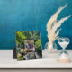 Cascading forest waterfall trees greenery plaque